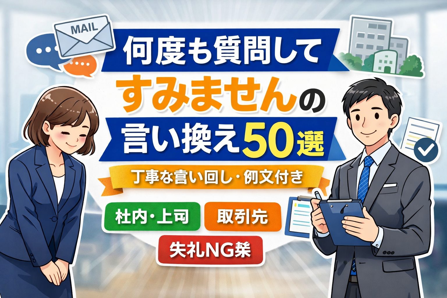 仕事の連絡やビジネスメールで使いやすい丁寧な表現を紹介します。